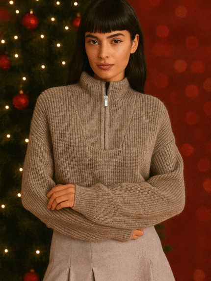 „Winter Luxe Zip“ – Premium alpakos vilnos megztinis su užtrauktuku