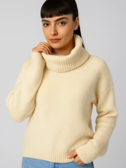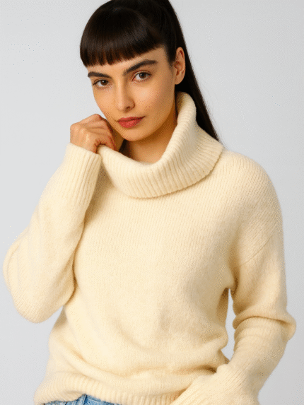 „Frosty Neck Luxe“ – Premium Alpakos Vilnos Megztinis su Aukšta Apykakle