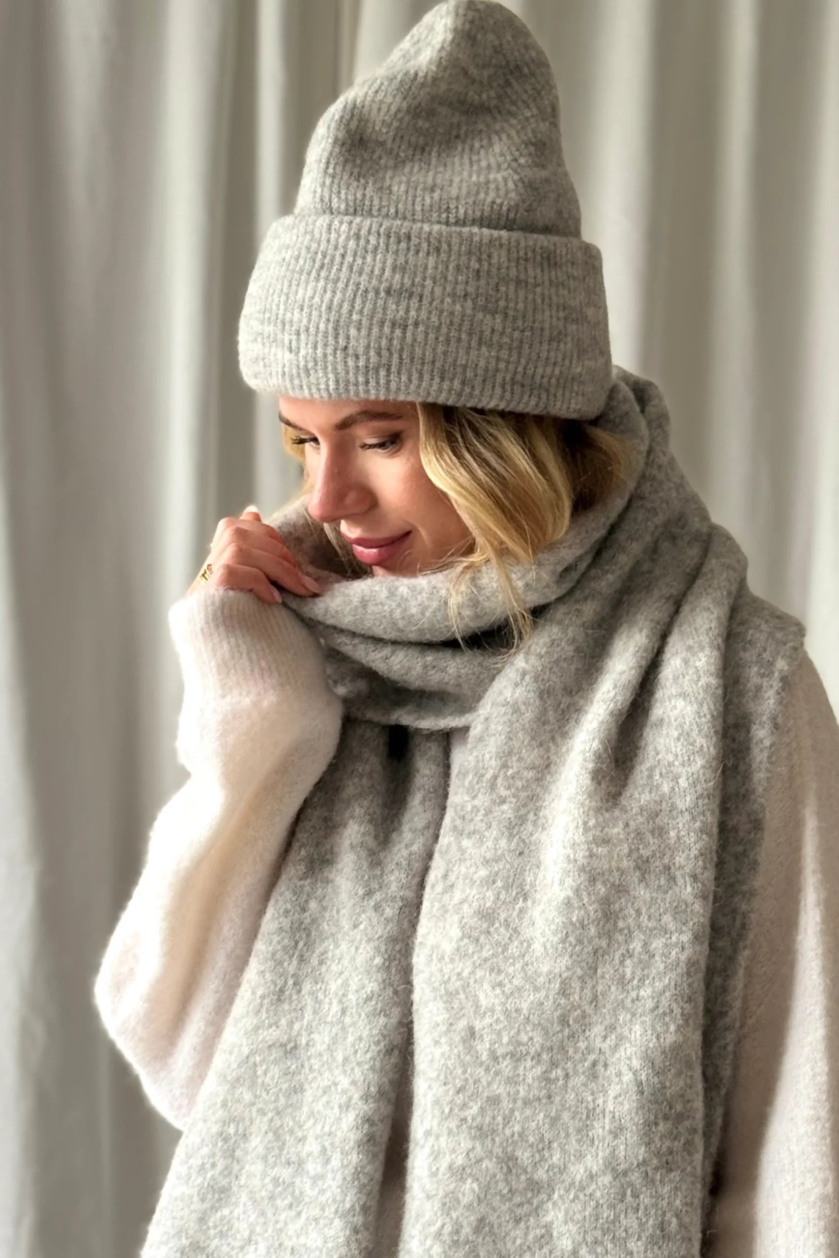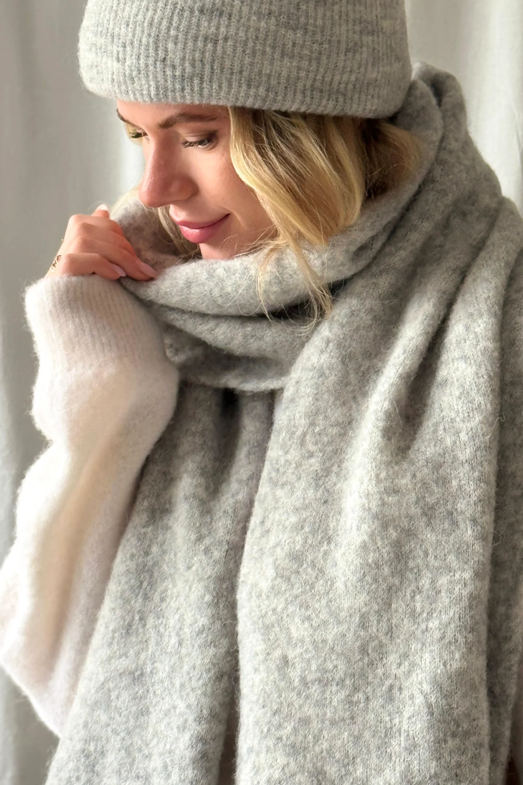 Subtilus, šiltas ir universalus – „Pilkoji Harmonija“ šalikas pagamintas iš alpakos vilnos, kuri apgaubia švelnumu ir natūralia šiluma.