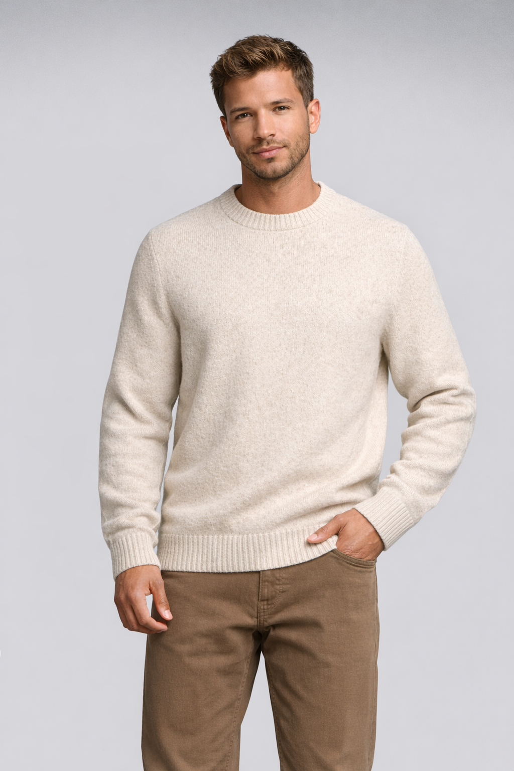 Neutralus atspalvis ir švari forma suteikia megztiniui universalumo – jis puikiai tiks tiek vėsesniems vakarams, tiek sluoksniavimui rudenį ar žiemą. Tai drabužis, kuris išlieka aktualus ilgiau nei vieną sezoną.