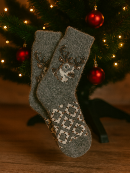 Unikalus mezgimo raštas suteikia kojinėms žaismingo žavesio, todėl jos tampa ne tik praktiška, bet ir stilinga šaltojo sezono detale.